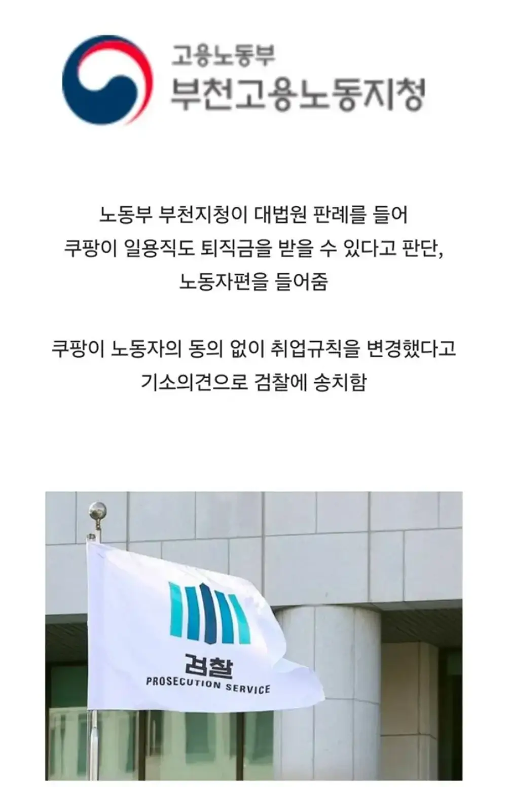 • 노동부 조사: 고용노동부는 해당 개정이 불이익 변경에 해당한다고 보고, CFS 인사책임자를 기소 의견으로 검찰에 송치했습니다.